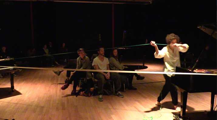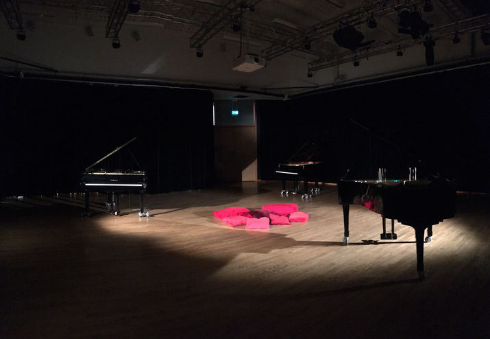 “The challenge for us was finding a way in which I could move in between instruments while developing techniques which would allow me to play the piano and make it sound while moving several meters away from it, connecting the instruments physically and sonically, at times having all three pianos sounding simultaneously.”